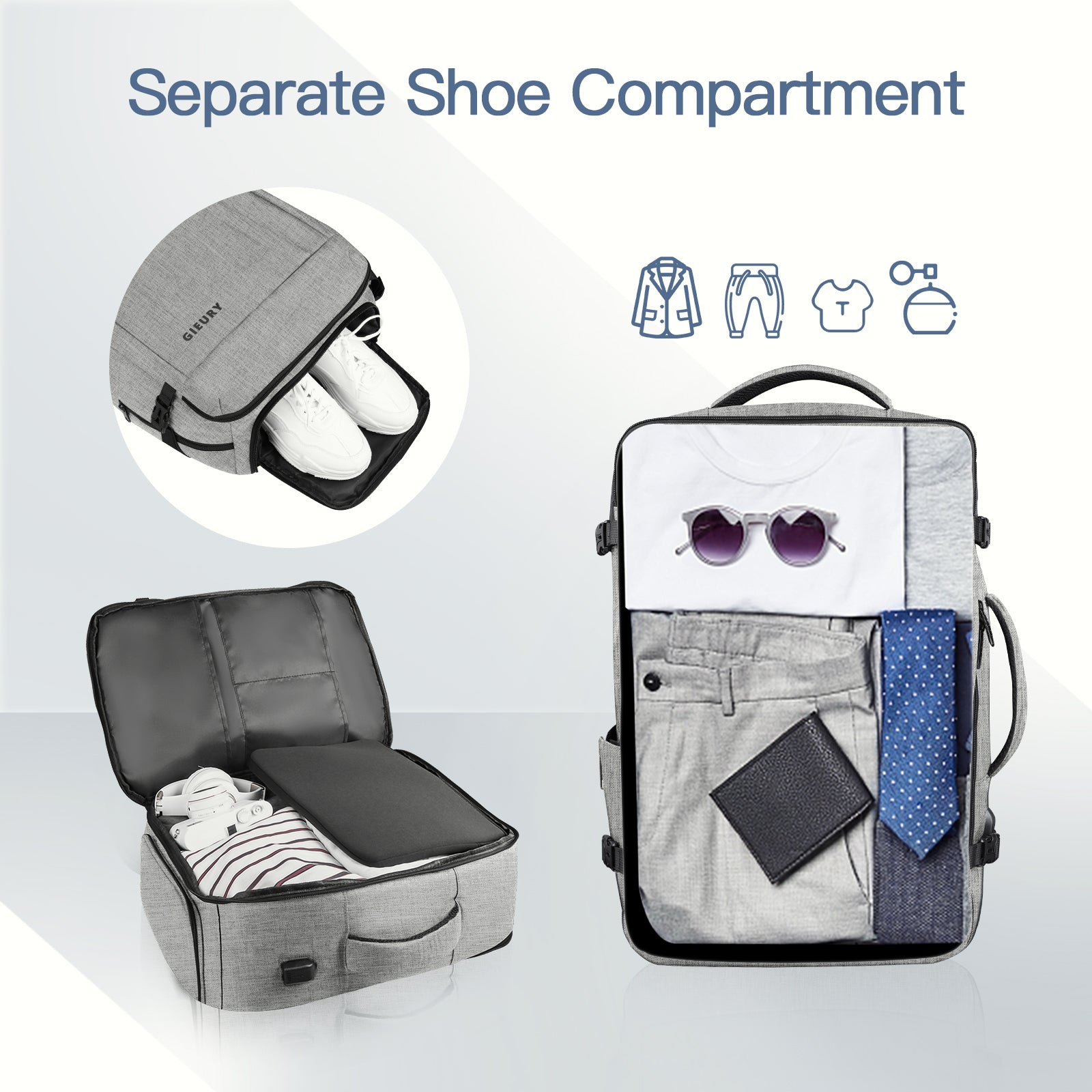 - CONVERTIBLE & TSA DESIGN: This carry-on backpack is multifunctional and can transform from a backpack to a suitcase style, providing you with a more flexible carrying experience. It comes equipped with a separate laptop compartment that can be fully opened to 180 degrees, making it easy and quick to pass through airport security checks and saving you valuable time. Additionally, it features a luggage belt on the back, designed for easier carry-on during international travel or on cruise ships.