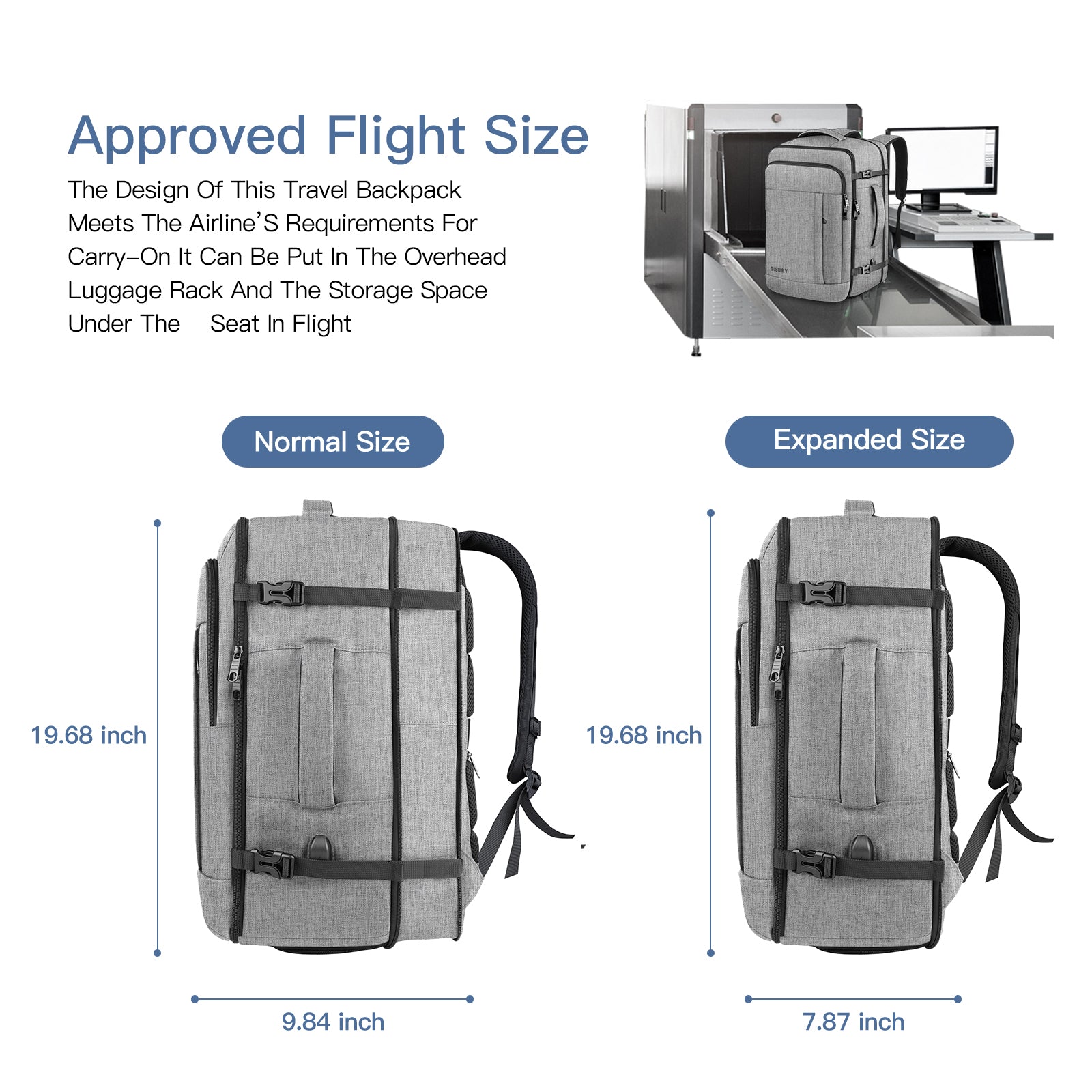 - EXPANDABLE & EXTRA LARGE CAPACITY:This 50L carry on backpack with expandable design offers you more capacity for packing. Unzipping to get 50L storage, then can easily accommodate clothing, shoes, and travel essentials, etc. It fits overhead and under seat while on state of standard carry on size, is an ideal choice for men, women, weekend traveler, or occasional vacationer. This versatile carry on backpack also meets airline carry-on requirements, for airlines such as Spirit, Jet Blue, etc.