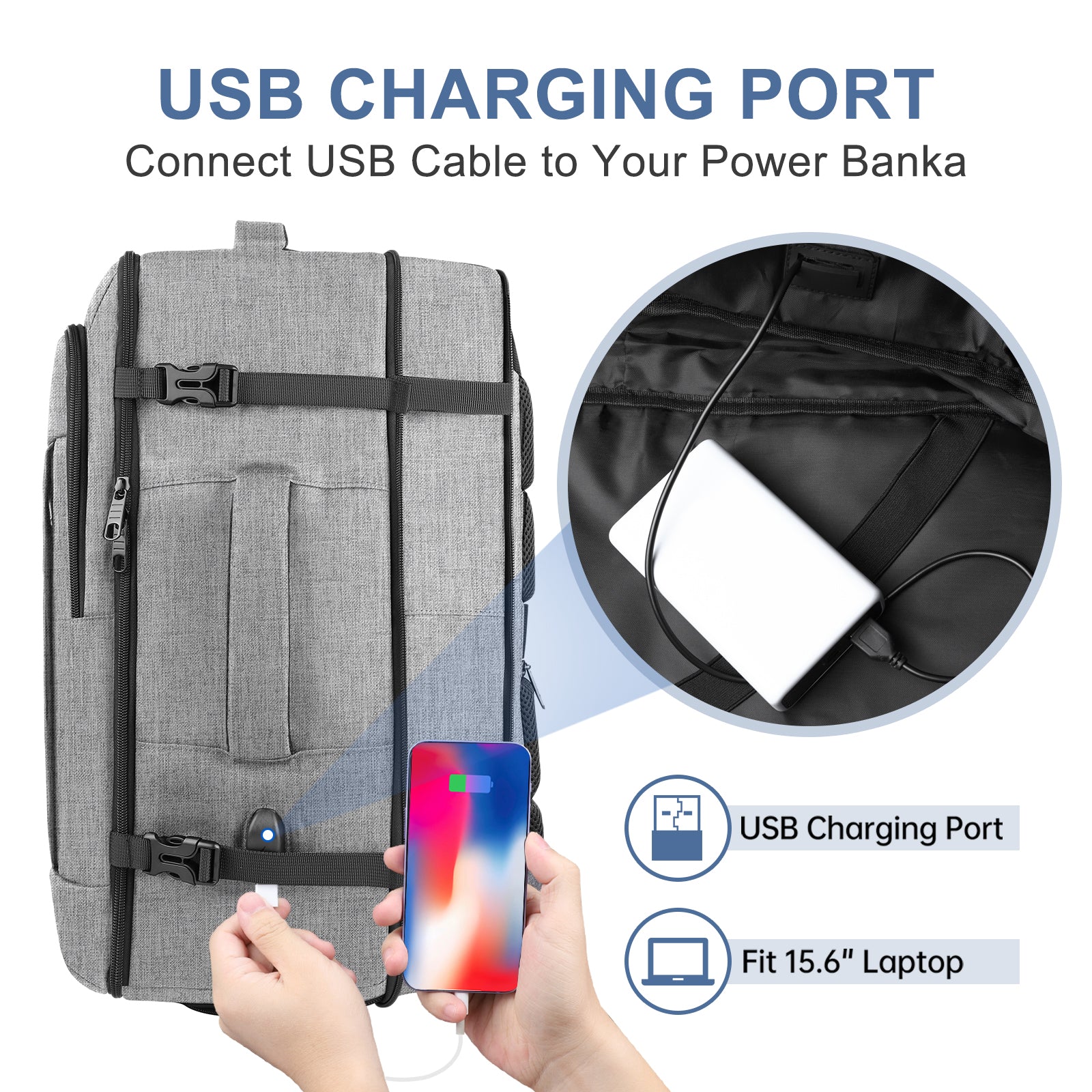 - USB CHARGING PORT: The travel backpack features a built-in USB charger outside and a charging cable inside, providing a convenient way to charge your phone while walking. It is important to note that the backpack does not include a power bank and does not power itself. The USB charging port is designed solely for charging purposes. With this added convenience, the backpack offers a practical solution for people who are frequently on-the-go and need to keep their electronic devices charged.